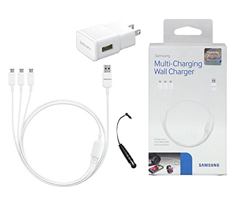 With the Samsung Multi-Charging Wall Charger, you can charge up to three micro USB devices at once. For example, a Bluetooth headset, a wearable (e.g. Samsung Gear 2), and your smartphone can be charged all at once! The Multi-charging cable optimizes the total charge across all three devices, dividing the 2A charge evenly. In other words, if you’re only charging two devices, power flows faster to each than if you were charging three simultaneouslyYou could charge a Bluetooth headset, a wearable (e.g. Samsung Gear 2), and your smartphone all at once!^The Multi-Charging Cable optimizes the total charge across all three devices, dividing the 2A charge evenly.^In other words, if you’re only charging two devices, power flows faster to each than if you were charging three simultaneously.